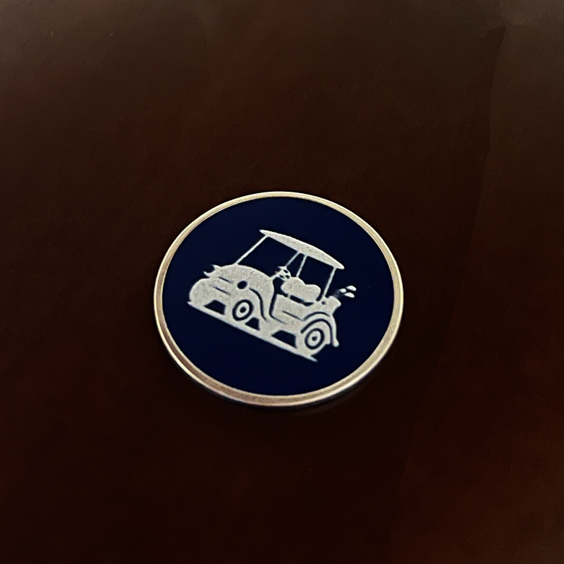 Marcador de bola metálico con logotipo SOFTER GOLF. Ultrafino.