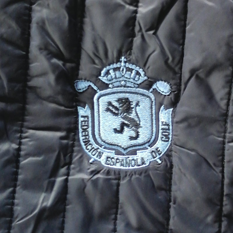 Logotipo RFEG al tono bordado en pecho y bandera de España en espalda.