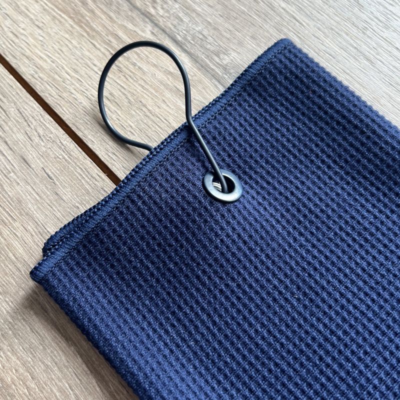 Fácil de limpiar y transportar, se trata de una novedosa y ligera toalla de golf de triple pliegue con un nuevo patrón o superficie de panal (waffle o pineapple), más pequeño y elegante que las toallas de microfibra waffle habituales, resultando una opción práctica y eficiente para mantener las manos o el equipamiento - en función del tipo de uso - limpios y secos en todo momento.